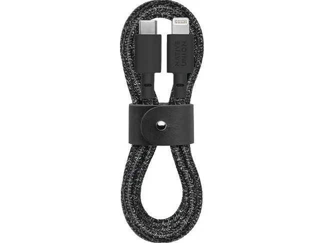 Charge smart and neat. Belt Cable comes wrapped up and secured with an integrated leather belt to make tangled cables a thing of the past. With a reinforced construction, it's stronger and more durable than ever.\n\nHaving a cable with us wherever we go is no longer an afterthought – it’s a necessity. After experiencing too many broken, tangled cables, we decided enough was enough. Something we all need to use on a daily basis deserves to look, feel, and work better. We crafted Belt Cable as a solution that we know will last a lifetime, and will make staying organized easier in your day-to-day.\n\nON-THE-GO LENGTH\nThe ideal length for high-speed charging anywhere you are.\n\nTANGLE-FREE STYLE\nSimply wrap up your cable with the attached leather belt to stay organized, never compromising style. Slide the belt anywhere along the cable for versatile carry.\n\nUNPARALLELED STRENGTH\nCrafted with nylon braiding and DuPont™ Kevlar® fiber, our cables are reinforced to be stronger and more durable than ever.\n\nCHOOSE QUALITY\nAll our cables are Apple MFi & USB-IF certified – because you should be able to rely on the quality of something you use everyday.\n\nSTAY COVERED FOR LIFE\nWe believe in the quality of our products. You deserve solutions that’ll last. With Lifetime Limited Warranty, you’re getting just that.