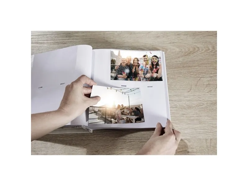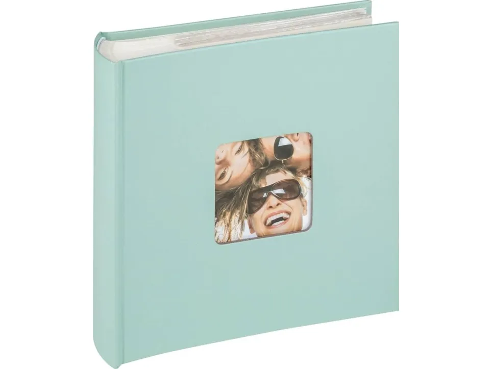 Book bound memo slip-in album with high quality cover. It is ennobled with a square die cut for your personal photo, equipped with writing spaces and has an additional CD or negative archive. The album is designed for200 photos of size 10 x 15cm (4 x 6 inch) in landscape format, available in the colours | light green | petrol green | orange | pink | ocean blue | and also exists as a wire-o album or design album.