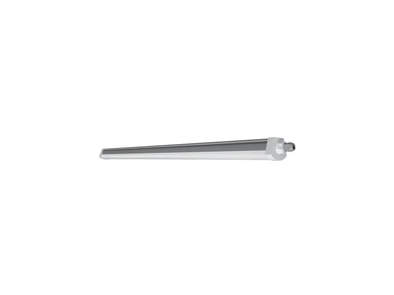 Damp Proof armaturer, gennemfortrådet (L, N, E). Produktegenskaber: Høj lysstyrke: Op til 120 lm/W. Beskyttelsesklasse: IP66. Spredningsvinkel: 120°. Gennemfortrådet med 3G1.5mm². Hus i polykarbonat. Produktfordele: Ensartet distribueret lys. Energibesparelser på op til 50% (sammenlignet med armaturer med lysstofrør). Nem montering da monteringsbeslag kan placeres frit på armaturet. Nem adgang til de elektriske terminaler via endestykker med drejnings- og låsemekanisme. Værktøjsfri tilslutning af forsyningskabel. 5 års garanti. Applikationsområder: Industri- og lagerfaciliteter. Parkeringsanlæg og viadukter. Parkeringsanlæg. Workshops, samlebånd. Udstyr/tilbehør: Klemmer i rustfrit stål med sikkerhedsskruer medfølger. Monteringstilbehør medfølger (suspension kit, tyverisikringskit).