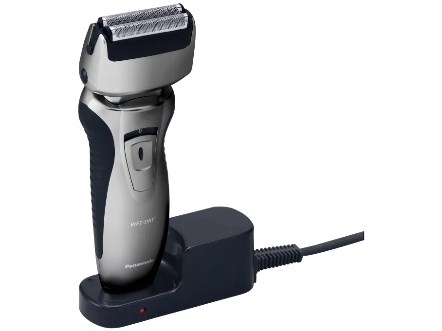 Panasonic ES-RW33. Shaver system: Foil shaver, Product colour: Black, Silver, Control type: Buttons. Power source: AC/Battery, Operating time: 21 min, Charging time: 8 h. Width: 57 mm, Depth: 42 mm, Height: 156 mm. Shaver base station functions: Charging