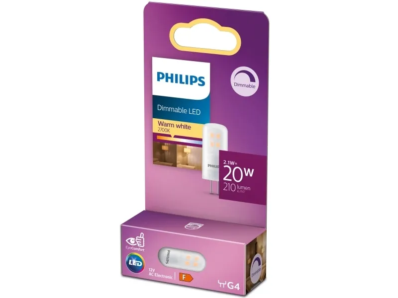Philips - LED-lyspære - form: kapsel - G4 - 2.1 W - varmt hvitt lys - 2700 K