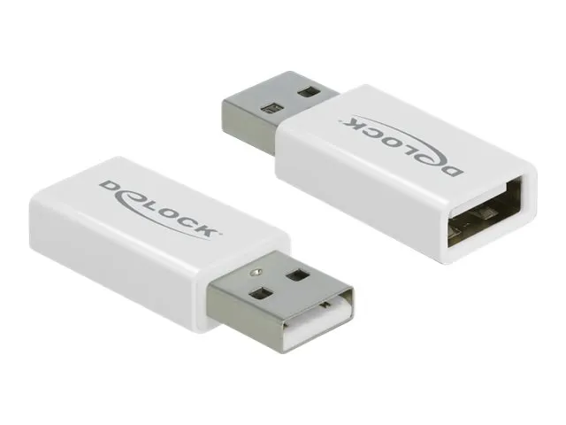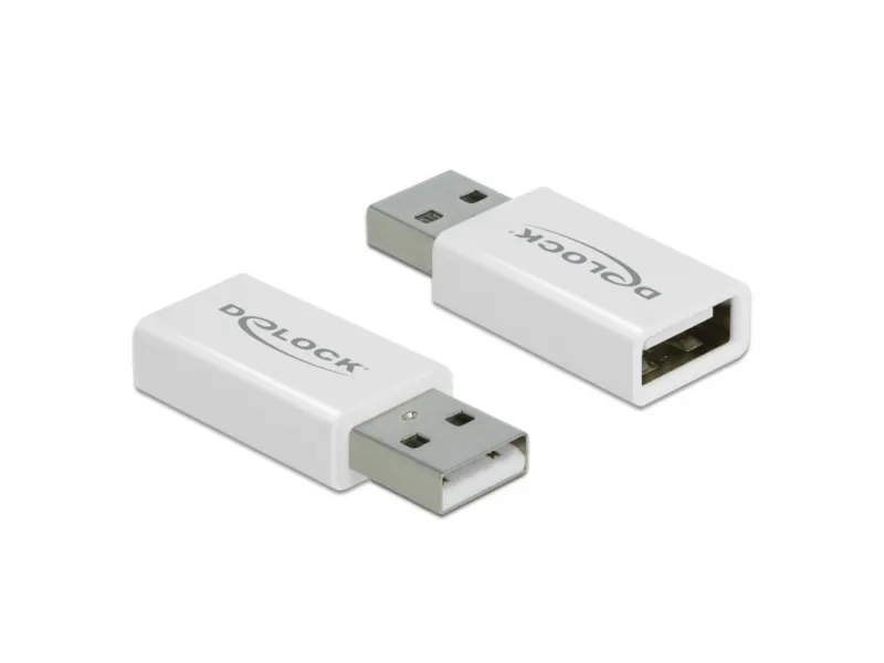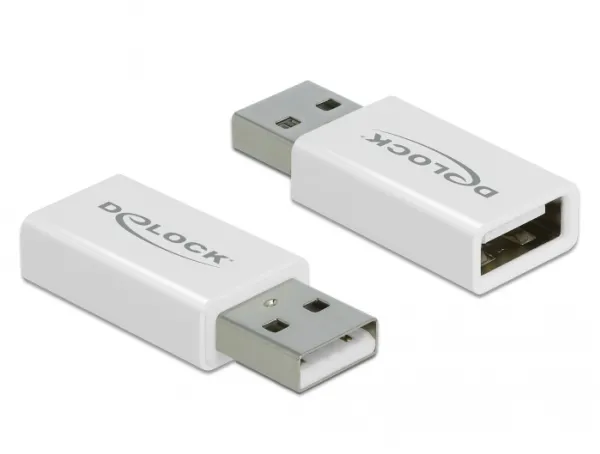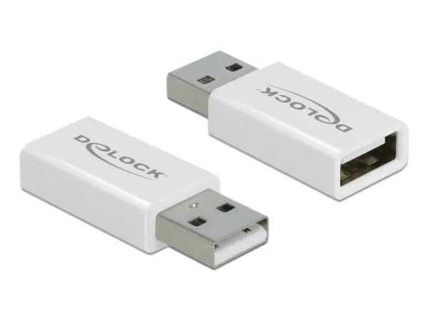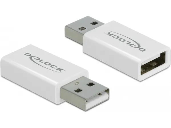 This adapter by Delock can be used to block the transfer of data from devices with USB Type-A connection. The data lines are not connected, so that the adapter can only be used for charging. This means that a PC cannot access the data of e.g. a connected smartphone.