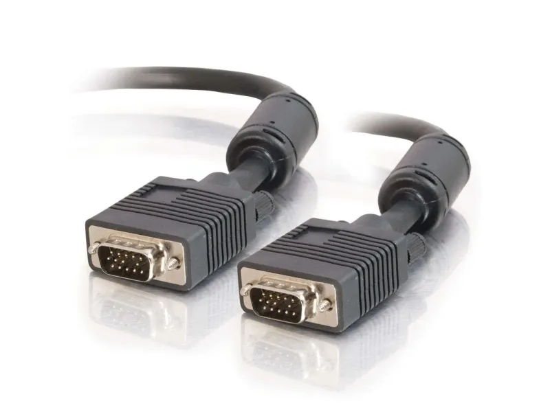 Go the distance without ghosting and signal distortion. Constructed from premium grade composite coaxial and twisted pair shielded cables, this ultra-premium monitor cable ensures crisp, distortion-free video so you have maximum monitor positioning flexibility. Uses three internal coax lines for red, green and blue. Ferrited to protect against EMI/RFI interference, this double-shielded cable consists of 125% foil shielding and 90% tinned copper braid shielding. Use it for video projectors, video splitters, KVM switches within video presentations, classroom environments, POS devices, server rooms, etc. Will accommodate cable runs up to 100 feet without a booster (in most cases).