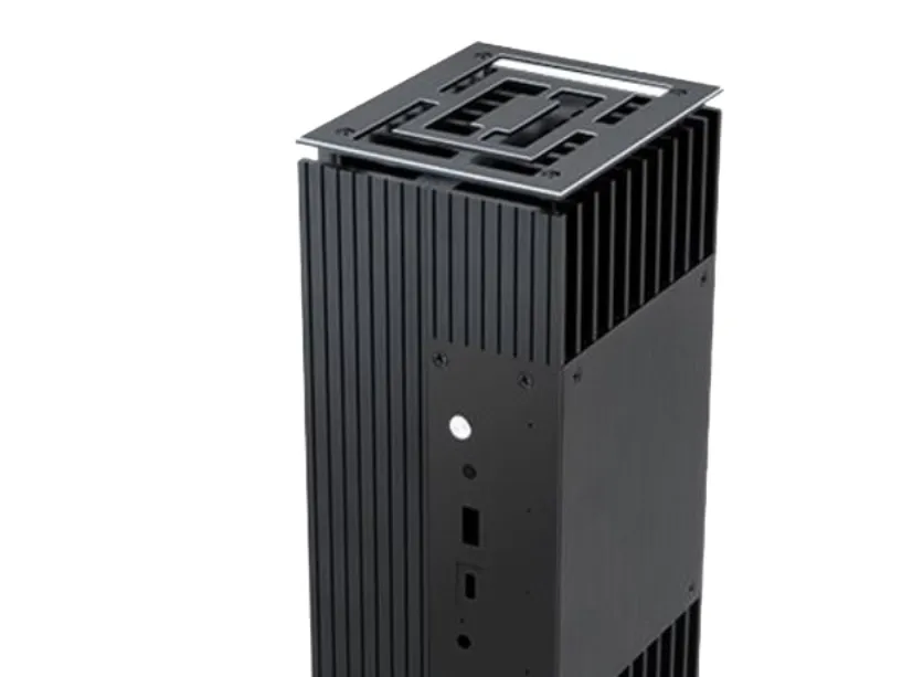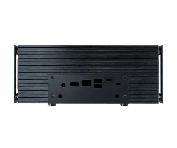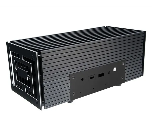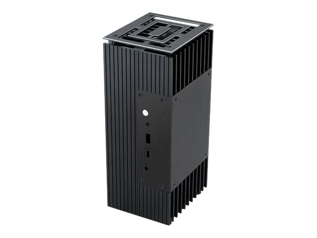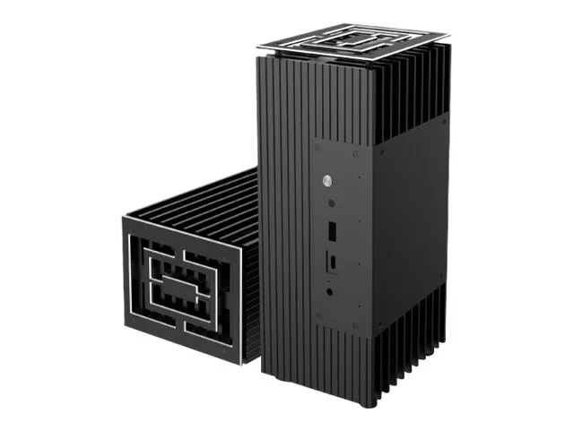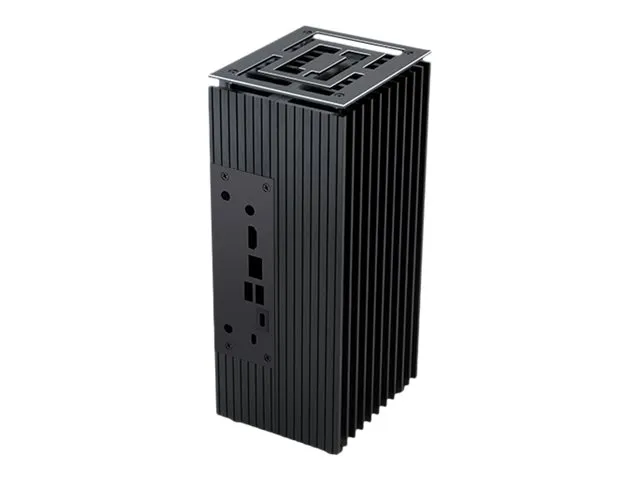 Compact fanless case for Intel 10th Generation NUC (Frost Canyon). Internal M.2 SSD heatsink reduces heat and enhances performance.
