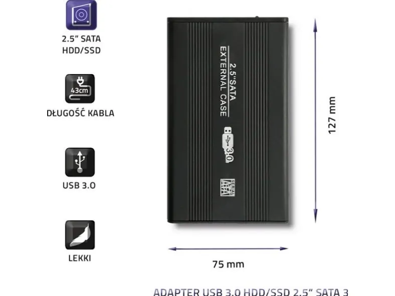 A hard drive case HDD/SSD 2.5" with SATA 3 and an attached cable with a USB plug will allow you to connect an additional disk to a PC or laptop.