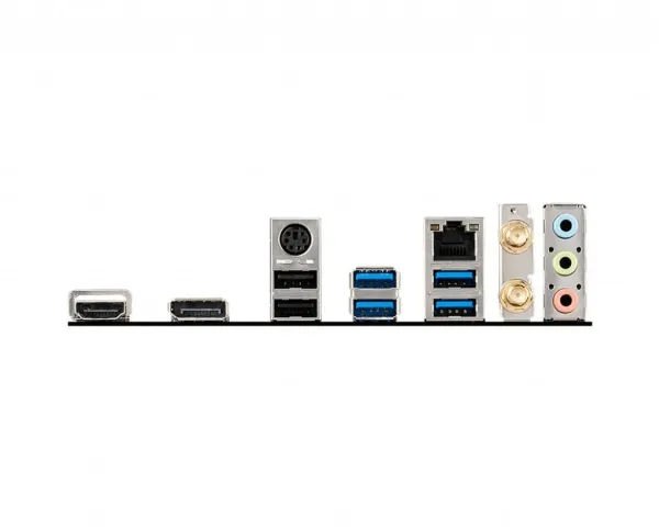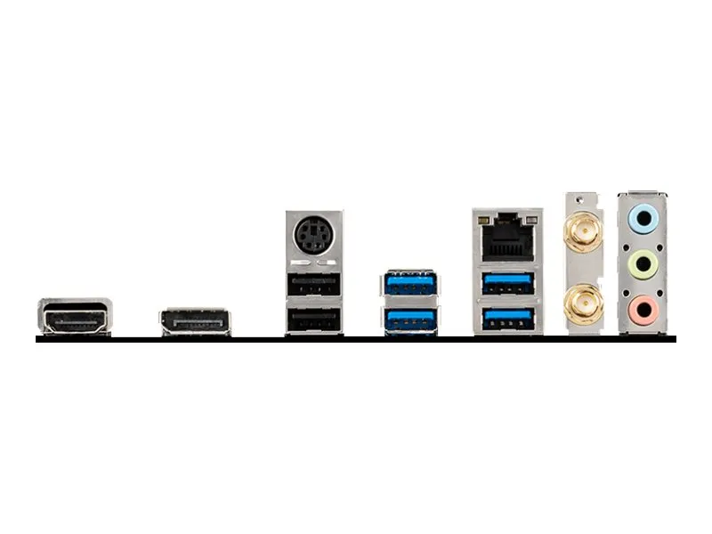1 x LAN (Gigabit Ethernet) 1 x lydinnlinje - minijakk 1 x lydutlinje - minijakk 1 x mikrofon - minijakk 4 x USB 3.2 Gen 1 1 x PS/2-tastatur / -mus 2 x USB 2.0 1 x HDMI 1 x DisplayPort
