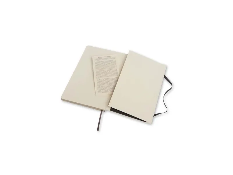 This reliable travel companion, perfect for calculations, thoughts and passing notes, has a cardboard bound cover with rounded corners, acid free paper, a bookmark, an elastic closure and an expandable inner pocket that contains the Moleskine history.