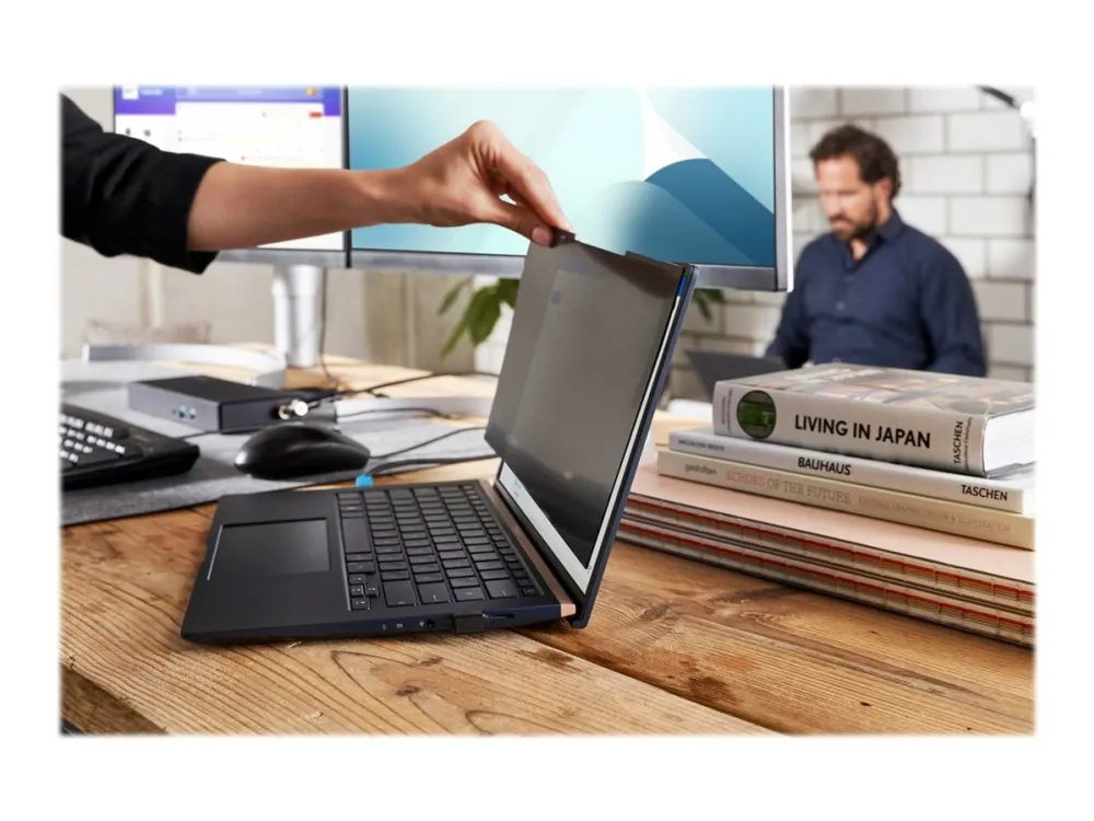 The patented MagPro 13.3" (16:9) Laptop Privacy Screen with Magnetic Strip offers best-in-class privacy protection. It can be attached and removed quickly and easily, while allowing your laptop to close and enter sleep mode without removing. An excellent solution for slim bezel or edge-to-edge displays. Screen protects monitor from scratches and damage, while providing privacy by limiting viewing angle to +/- 30°. Reduces harmful blue light by up to 22%, diminishes glare, and improves clarity. Reversible for matte or glossy viewing options. Includes cleaning cloth and protective case to help prevent scratches when not in use. TAA-compliant.