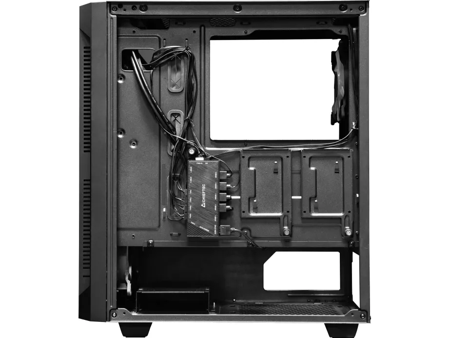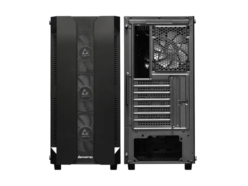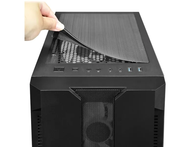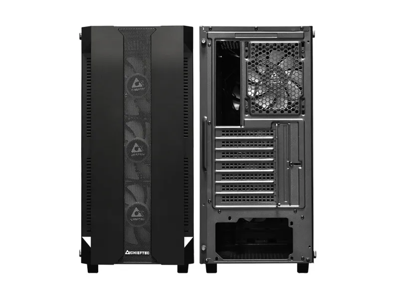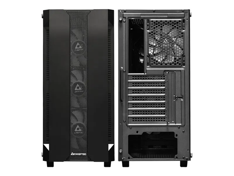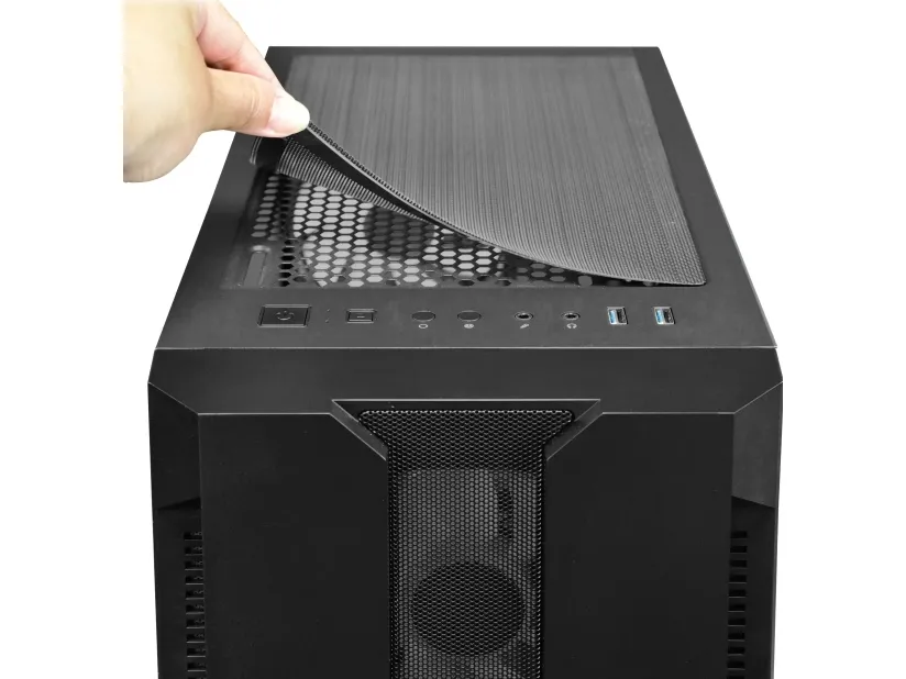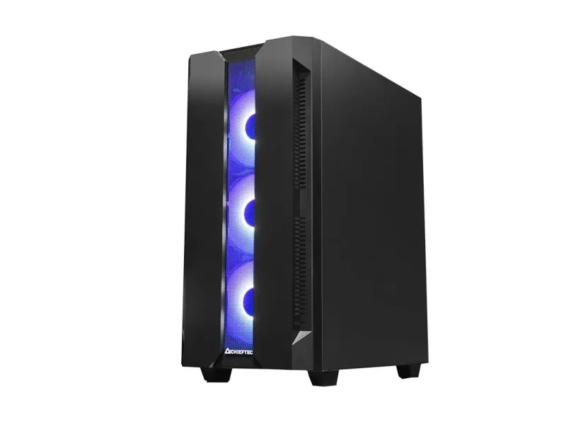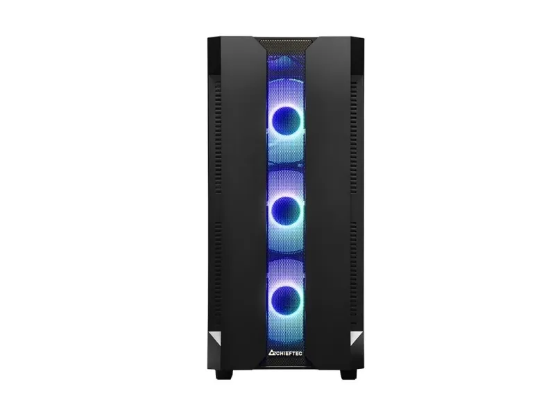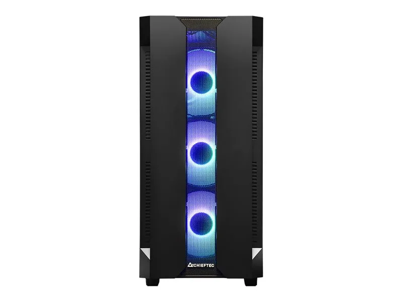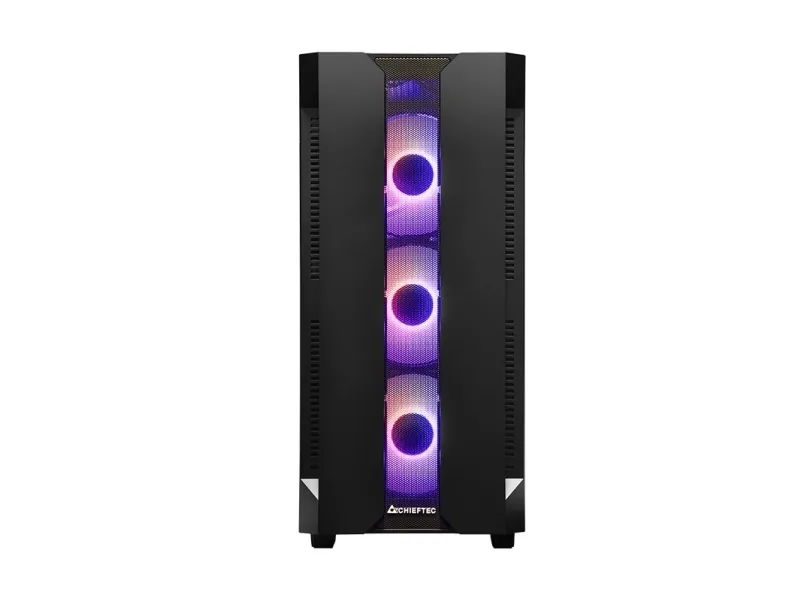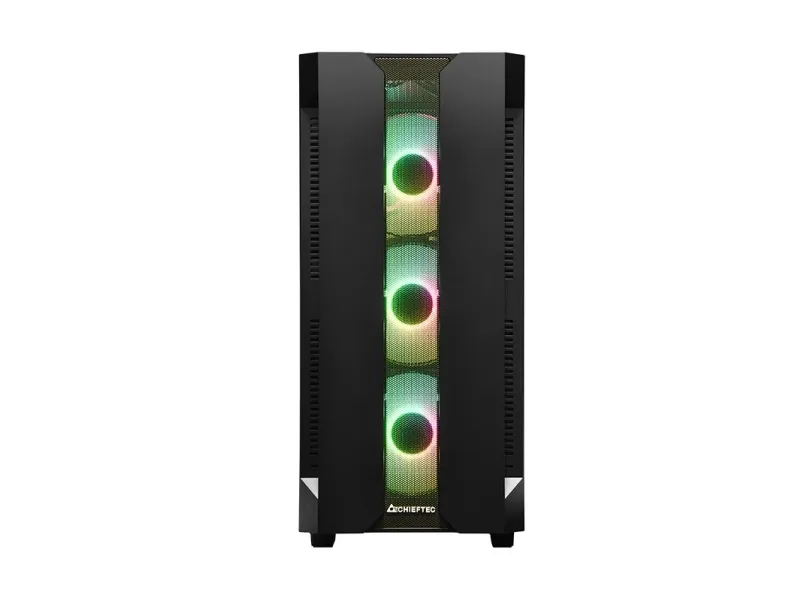 The Chieftec Hunter gaming case combines modern RGB style with high gaming performance in a compact and competitive package. Featuring four A-RGB rainbow fans pre-installed, a mesh front panel for optimized airflow and a tempered glass side panel, the Hunter offers style and functionality. A-RGB lighting can be controlled with the buttons on the top of the. Mesh filtering in the front and bottom of the case, as well as a magnetic dust filter on the top protects the system from dust and keeps the build clean.