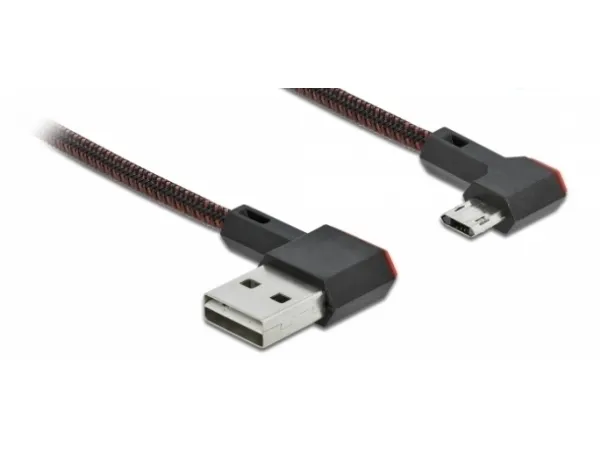 Delock Easy - USB-kabel - USB (hann) venstre/høyre-vinklet, reversibel til Micro-USB type B (hann) venstre/høyre-vinklet, reversibel - USB 2.0 - 1 m - svart