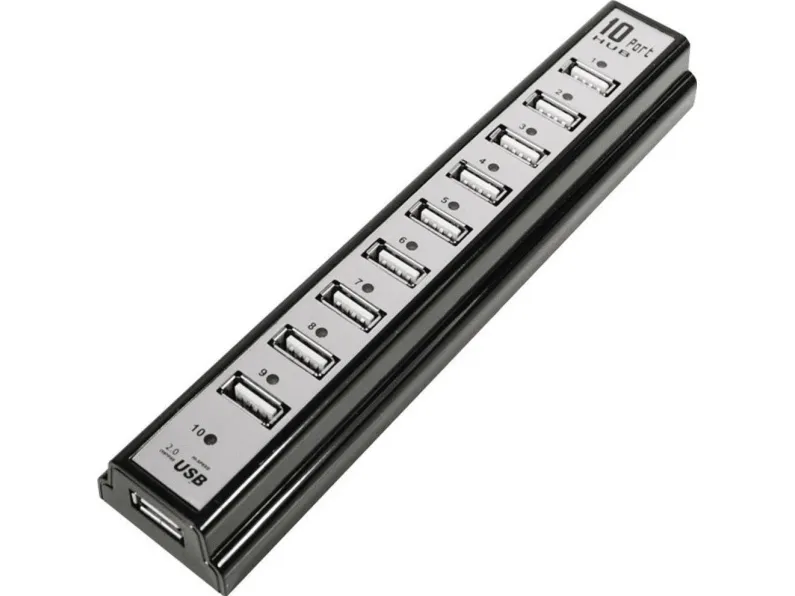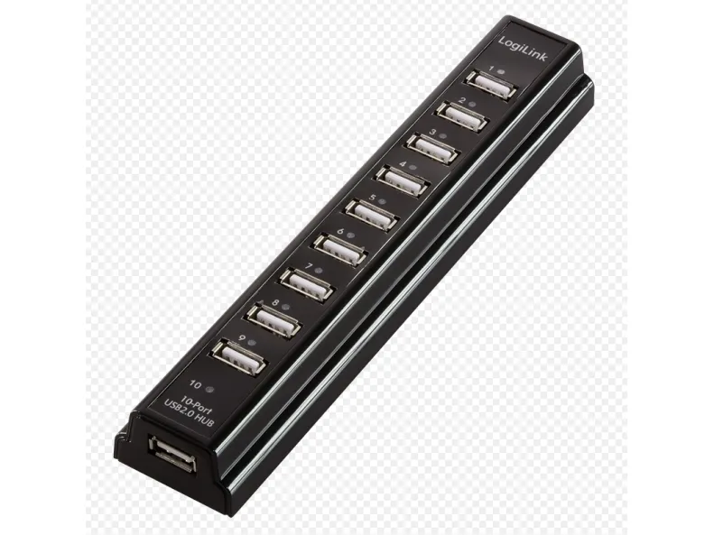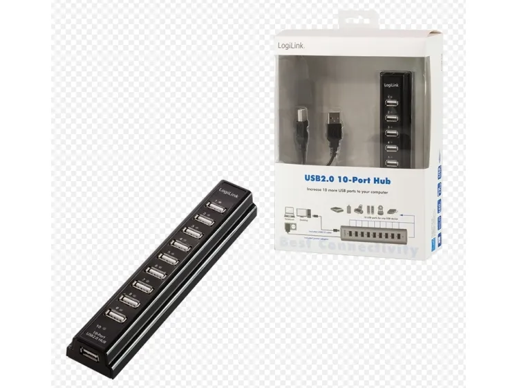 LogiLink® USB 2.0 hub 10-port med strømforsyning, sort