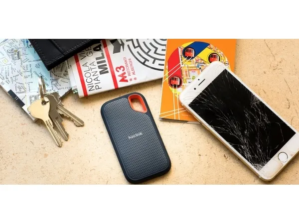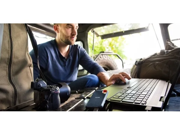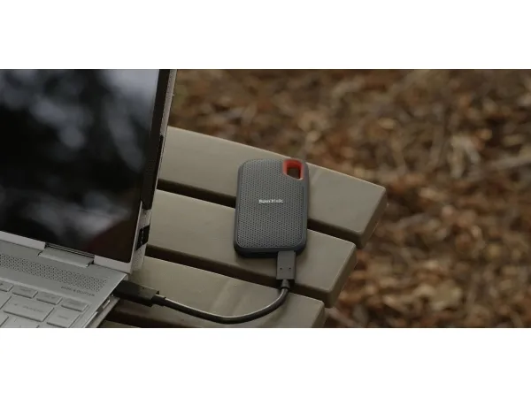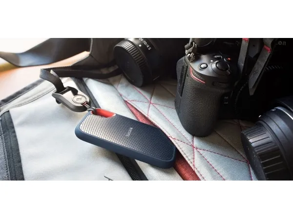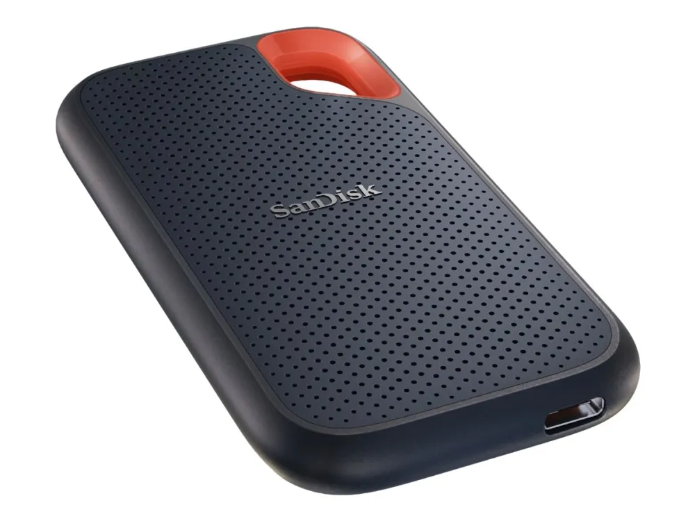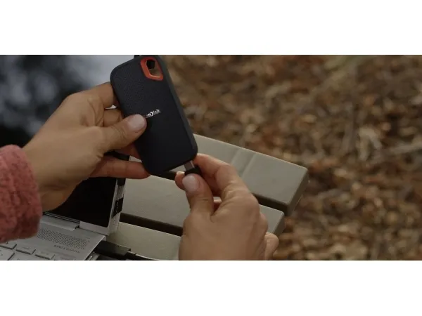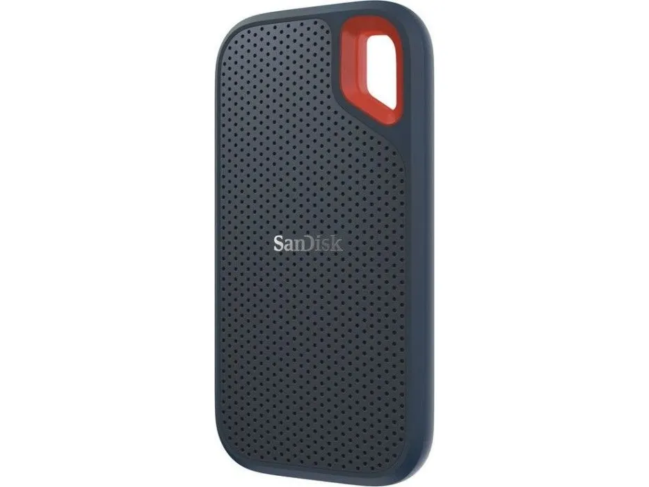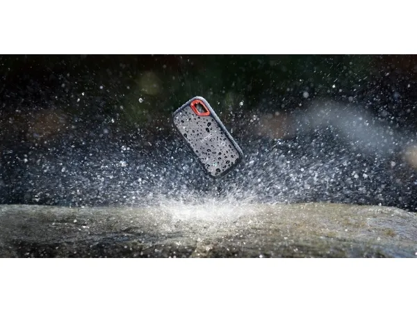 The rugged SanDisk Extreme Portable SSD delivers high-speed transfers with up to 550MB/s read speeds. This makes it perfect for saving and editing hi-res photos and videos. With an IP55 rating, it also stands up to rain, splashes, spills and dust.