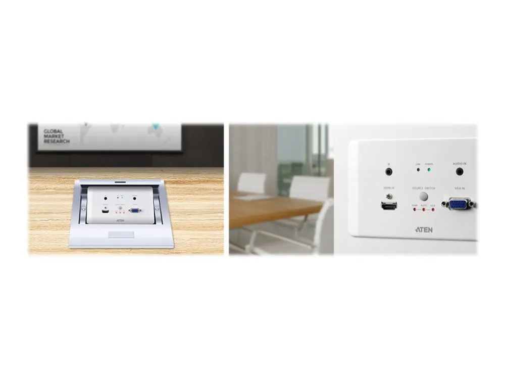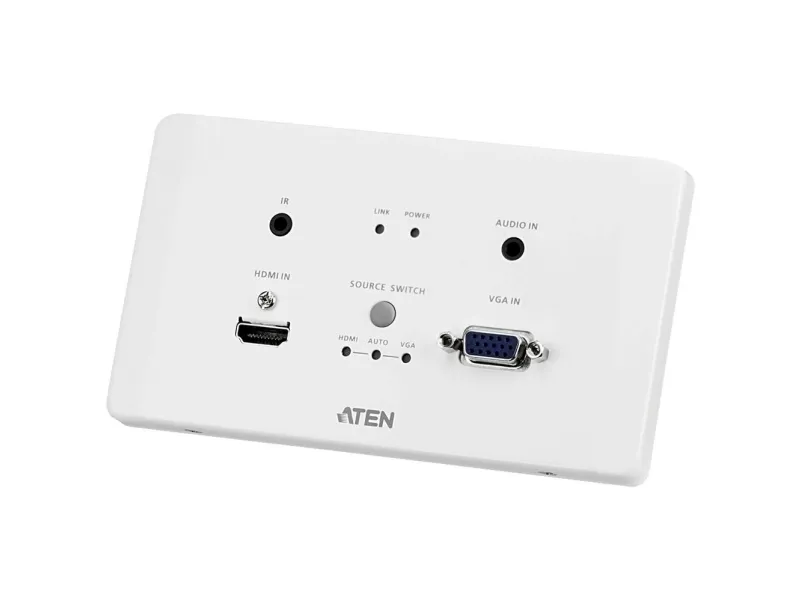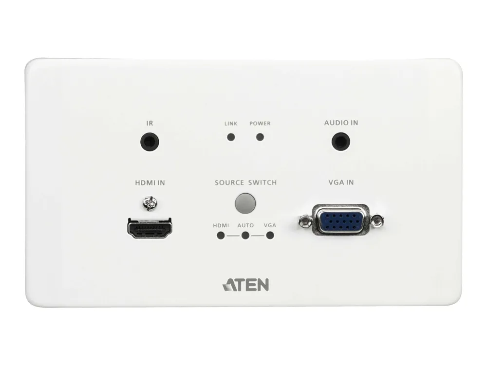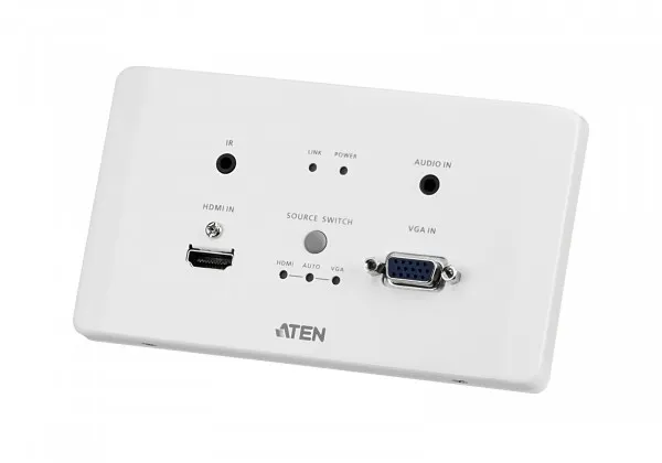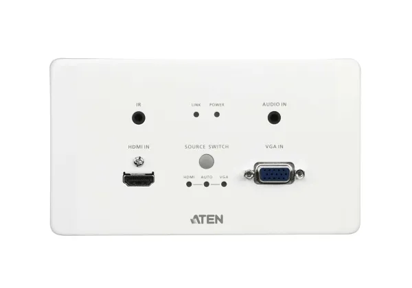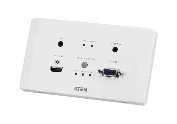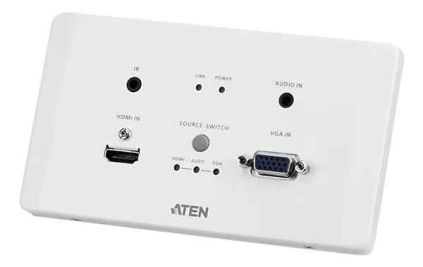With minimal dimension requirements that can fit both EU and MK standards across different regions, the VE2812AEUT is a wall plate transmitter for sending VGA (with audio) and HDMI signals up to 100 m over a single Cat 5e/6/6a cable that is designed to merge with the clean and elegant décor of modern meetings rooms, boardrooms, conference rooms, classrooms and lecture halls.