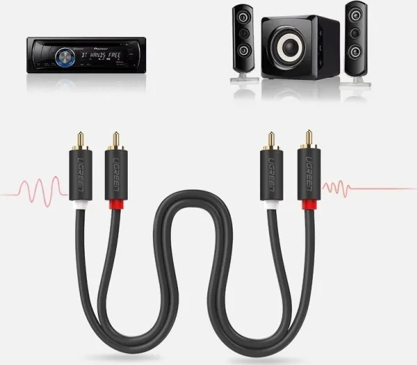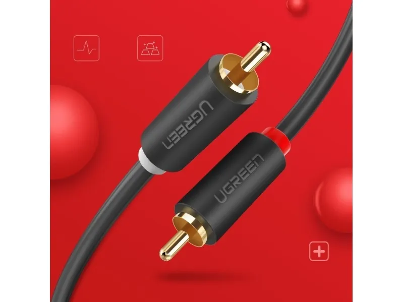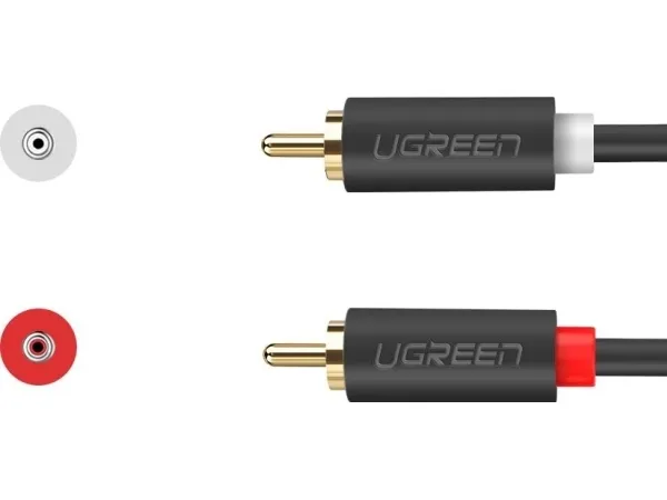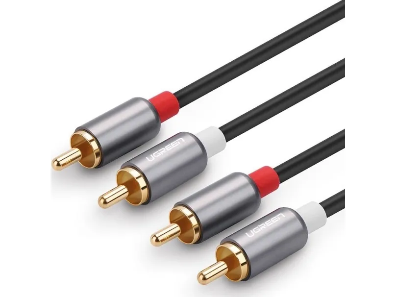 Ugreen 10518, 2 x RCA, Hankjønn, 2 x RCA, Hankjønn, 2 m, Sort, Gull, Rød, Hvit