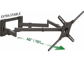 Barkan Mounting Systems BM464XL. Maximum weight capacity: 50 kg, Minimum screen size: 33 cm (13"), Maximum screen size: 2.11 m (83"), Minimum VESA mount: 75 x 75 mm, Maximum VESA mount: 600 x 400 mm. Tilt angle range: -5 - 15°, Swivel angle range: -90 - 90°, Angle of rotation: 180°, Distance to the wall (min): 10 cm, Distance to the wall (max): 101 cm. Product colour: Black