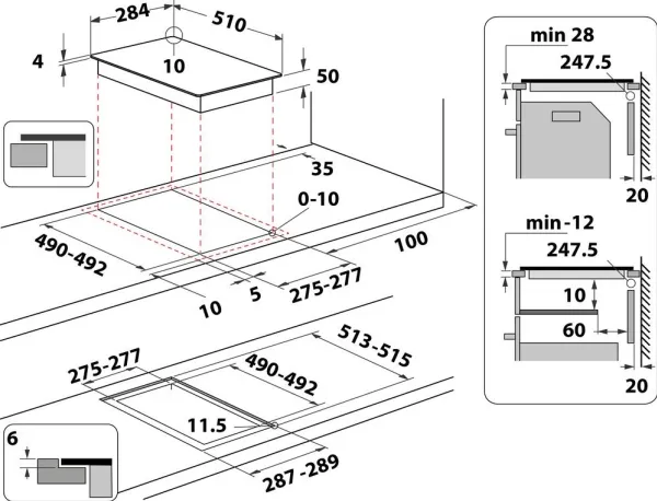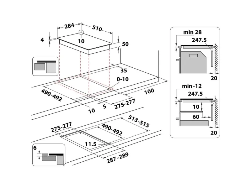 Whirlpool WS Q0530 NE - Induksjonskomfyrtopp - 2 plater - Nisje - bredde: 27.5 cm - dybde: 49 cm - uten ramme - svart