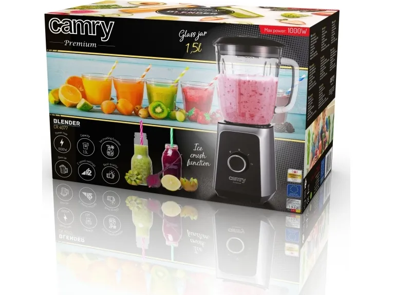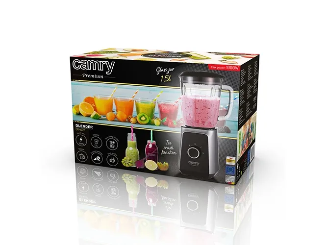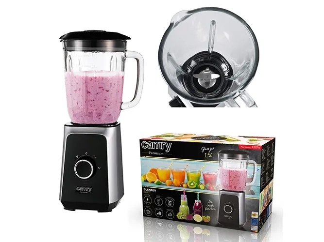 Max Power: 1000W, Nom. Power: 500W. Blender: Glass jar capacity: 1,5L. Ice crush function Stainless steel blades 2 speed settings. Pulse function. Anti-slip feet. Stainless steel sieve.