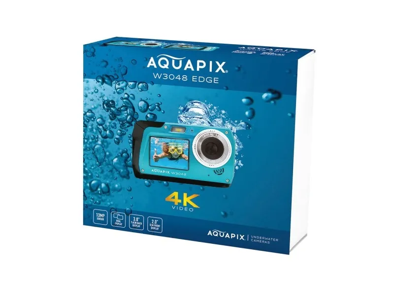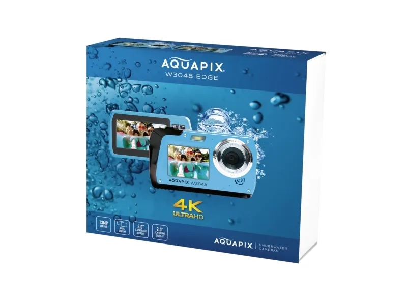 Easypix W3048 EDGE. Camera type: Compact camera, Megapixel (approx.): 13 MP, Sensor type: CMOS, Maximum image resolution: 3840 x 2160 pixels. ISO sensitivity (max): 400. Digital zoom: 16x. HD type: 4K Ultra HD, Maximum video resolution: 3480 x 2160 pixels. Display diagonal: 7.62 cm (3"). Weight: 138 g