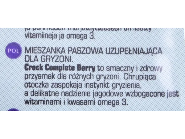 Versele-Laga Crock Berry, Matbit, 50 g, Kanin, Omega-3, Vitamin A, Vitamin C, Vitamin D3, Vitamin E, Veske