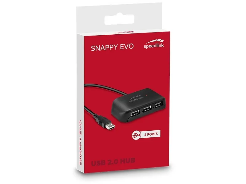 Add four additional USB ports to your PC or laptop with the practical USB 2.0 hub from the SNAPPY EVO family. Experience fast data-transfer speeds of up to 480Mbit/s with USB Hi-Speed connectivity. Its compact design complements the latest hardware perfectly, and as it takes up so little space it’s easy to carry around with you. Thanks to plug & play technology, just connect it and it’s ready to use right away – perfect for a mouse, keyboard or external storage media.