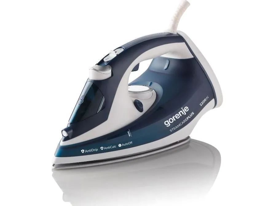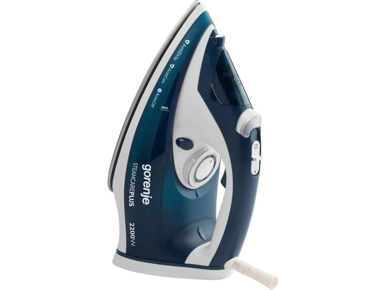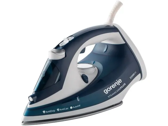 Gorenje SIH2200TQC. Type: Steam iron, Soleplate type: Ceramic soleplate, Cord length: 2.5 m. Iron power: 2200 W. Width: 133 mm, Depth: 320 mm, Height: 145 mm. Package width: 125 mm, Package depth: 313 mm, Package height: 165 mm