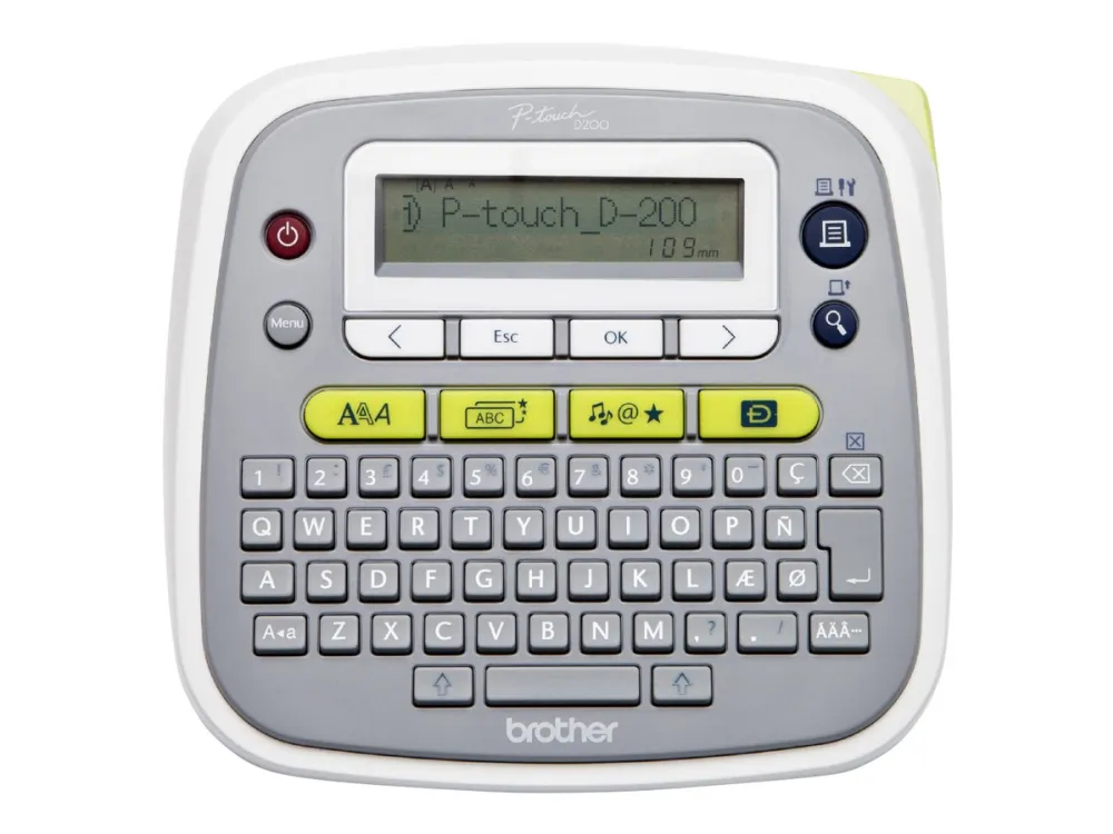 Brother P-Touch PT-D200 - Etikettmaker - S/H - termotransfer - Rull (1,2 cm) - 180 dpi - inntil 20 mm/sek - 2-linjers utskrift - grå, hvit
