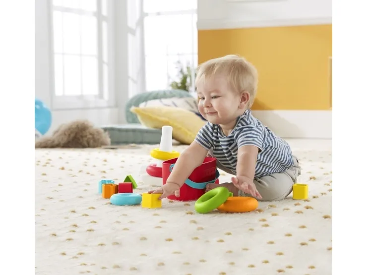 Endelig … ringen over alle ringer. Denne Fisher-Price Rock-a-Stack-leken er laget av plantebaserte materialer* og byr på klassisk stabelmoro for babyer. Den har en base som vugger, og fem fargerike ringer som de små hendene kan gripe og stable. Stabling hjelper babyen med å utvikle øye-hånd-koordinasjon og introduserer dem for begrepet relativ størrelse, mens de lærer å sortere og stable fra den største til den minste! (*Leke laget av minst 90 % etanol fra sukkerrør.)
