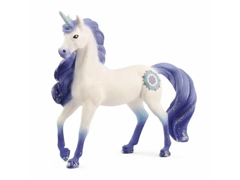 The proud mandala unicorn stallion enchants the whole of bayala® with his breathtaking blaze of color. He is part of the new mandala unicorn family, which can be recognized by their unique mandala tattoos. Their home are the mandala hills of bayala, which are as colorful as the unicorns themselves. The mandala unicorn stallion enchants every inhabitant of bayala® who sees him, with his breathtaking blaze of color and his proud attitude. His beautiful mandala shows a mysterious triangle, which is a sign of his magical power. The blue tattoo in the middle shines as intensely as the color of the sky. The stallion is a respectful creature and at the same time a gentle and very loving father who loves to play with his mandala unicorn foal. The new, colorful mandala unicorn family can be recognized by their unique mandala tattoos. They live together and secluded in the vastness of the colorful mandala hills of bayala. The Schleich® figures are modeled in detail and promote educationally valuable play. The figure is part of the bayala® theme world from Schleich® and is suitable for children between 5-12 years.