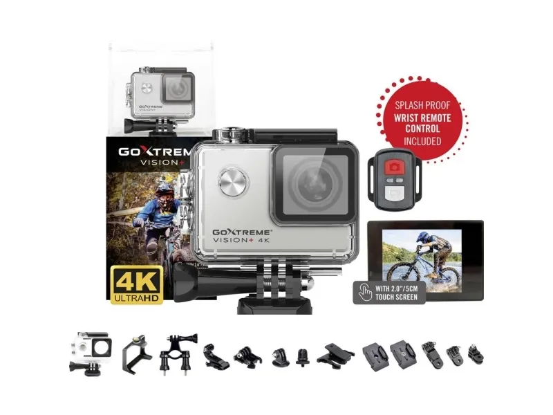 GoXtreme vision+ har et vandtæt kabinet på op til 30 m samt et stort og komfortabelt 2 (5cm) touchscreen - ideal til at kontrollere og justere kameraindstillingerne og til at se de optagede fotos og videoer. 170° ultra-vidvinkel