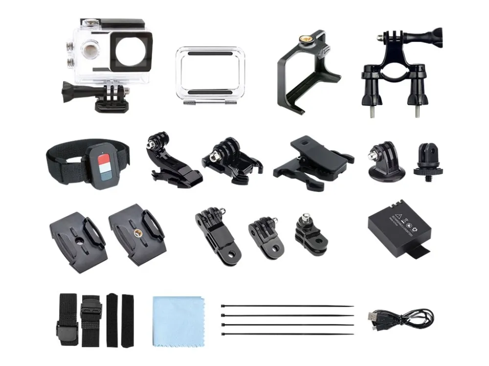 Vi fra GoXtreme vil give vores kunder maksimal komfort - derfor er et stort udvalg af holdere og tilbehør allerede inkluderet i hvert af vores kameraer. GoXtreme vision+ har også en håndledet-fjernbetjening og holdere til alle mulige sportsgrene direkte inkluderet. Integreret WiFi-funktion: Oversigt, del og fjernbetjening