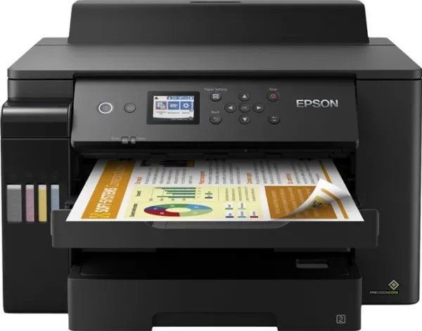 This feature-rich EcoTank for small office and business users makes light of A3+ tasks, while offering a low cost per page. A3+ jobs can be accomplished quickly thanks to fast print speeds, two 250-sheet A3 front trays and a 50-sheet A3 rear feed. Print how you like with mobile printing, Ethernet and a 6.1cm LCD screen.Get more done in less timeThis fast and efficient printer that can deliver a first page in as little as 5½ seconds¹ and print speeds of 25ppm in black and colour2.Feature-rich A3+ EcoTankThe L11160 is designed for printing up to A3+. It''s easy to navigate the extensive range of features via the 6.1cm LCD screen and hard keys.Keep on savingMaking a saving every time you print with this EcoTank that delivers an incredibly low cost per page. Unlike other printers, EcoTank features large ink tanks that you fill with low-cost ink bottles.Business quality printingThe fast drying pigment ink produces smudge-free and highlighter-resistant prints. With this reliable and high-quality ink, you can be sure it will deliver great prints with clear text and vivid colours. From one set of replacement inks, you can produce up to 7,500 pages in black and 6,000 in colour3.Print from almost anywhereIt''s easy to print from mobiles, tablets and laptops using EcoTank. With Wi-Fi and Wi-Fi Direct, you can send documents to print from smart devices using the Epson iPrint app4.Easy to use and reliableFilling the ink tanks is simple with the resealable, intuitive and drip-free ink bottles. Epson’s unique Heat-Free PrecisionCore Technology offers improved reliability, reduced downtime and less environmental impact. No warm up time and the first page prints fast using less power. Epson EcoTank L1116. Colour, Number of print cartridges: 4. Maximum resolution: 4800 x 1200 DPI. Maximum ISO A-series paper size: A3. Duplex printing. Wi-Fi. Product colour: Black