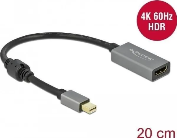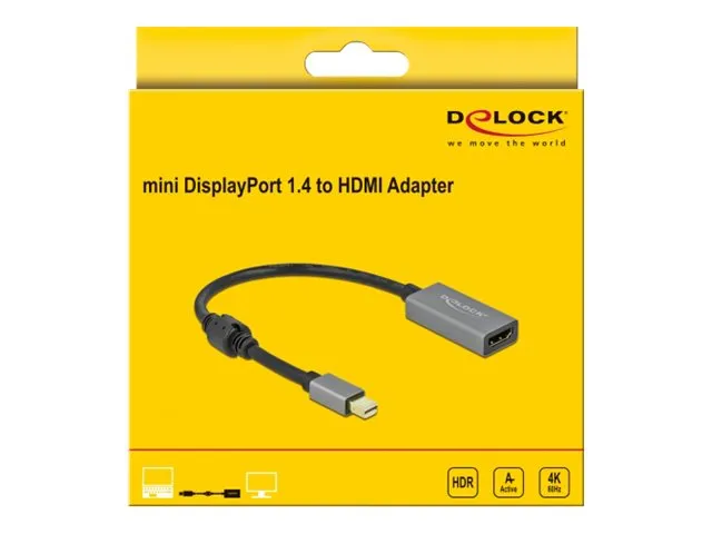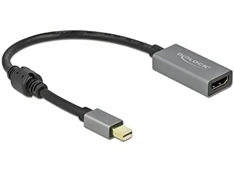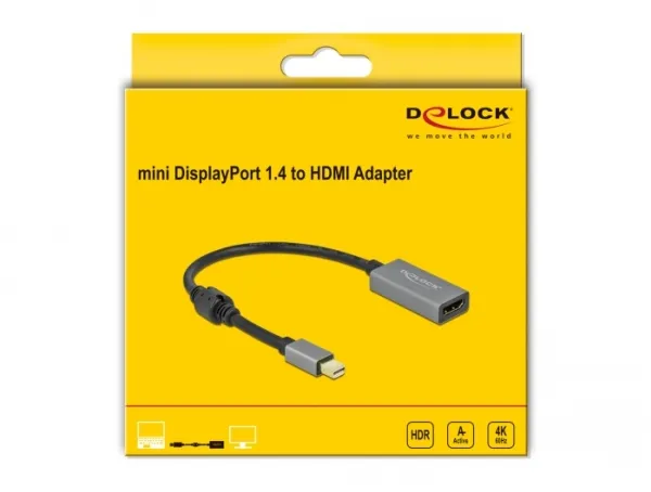 This adapter by Delock enables the connection of an HDMI monitor to the system via a free mini DisplayPort interface. The adapter supports a resolution up to 4K Ultra HD at 60 Hz and is backward compatible to Full-HD 1080p.
