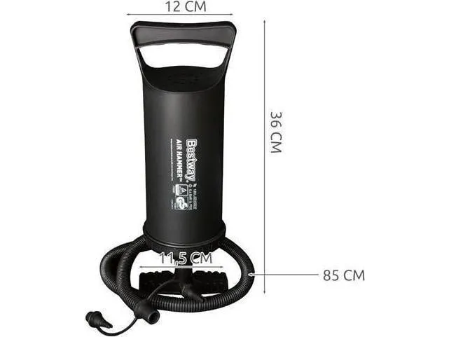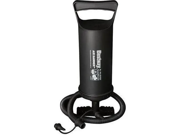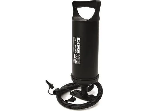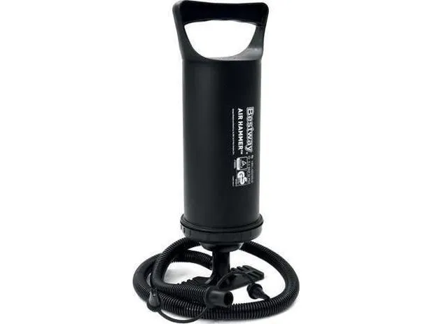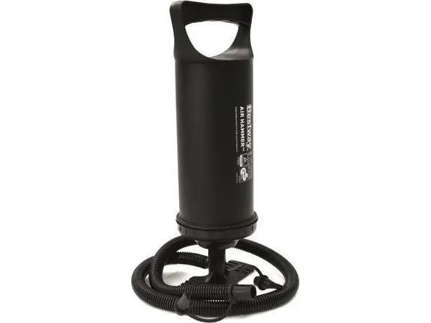 AIR HAMMERTM–INFLATION PUMP - Stroke volume: 1.85L/cycle - Large air chamber for rapid inflation - Inflates on up and down stroke - Flexible hose - 3 valve adaptors to fit nearly every inflation valve - Designed to provide maximum airflow Content: One hand pump