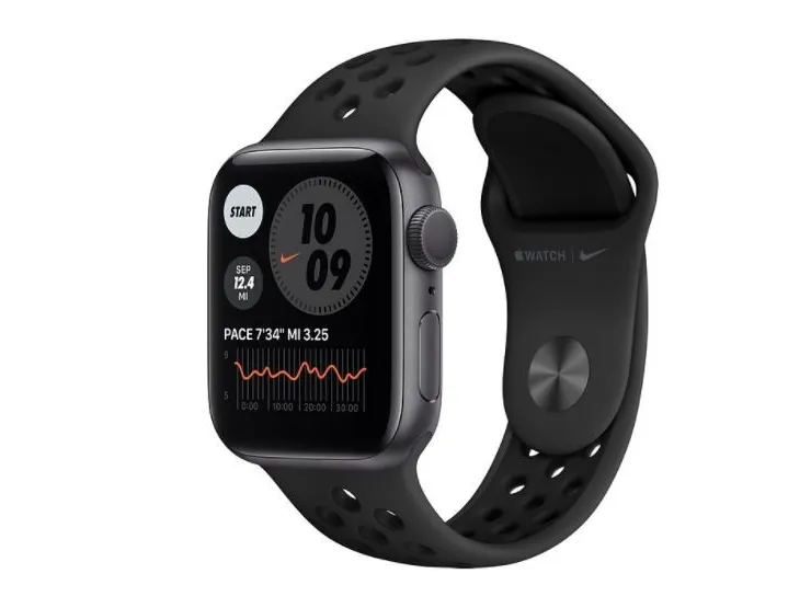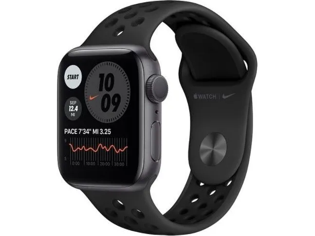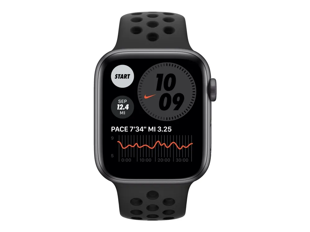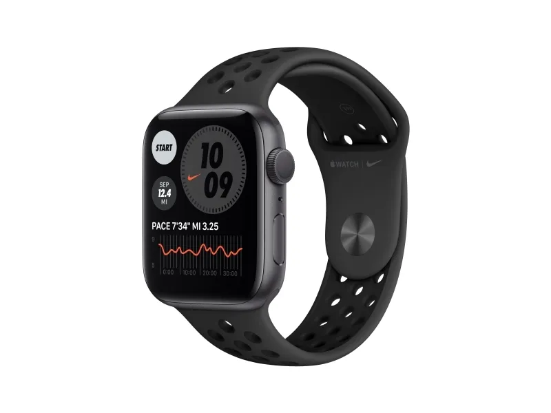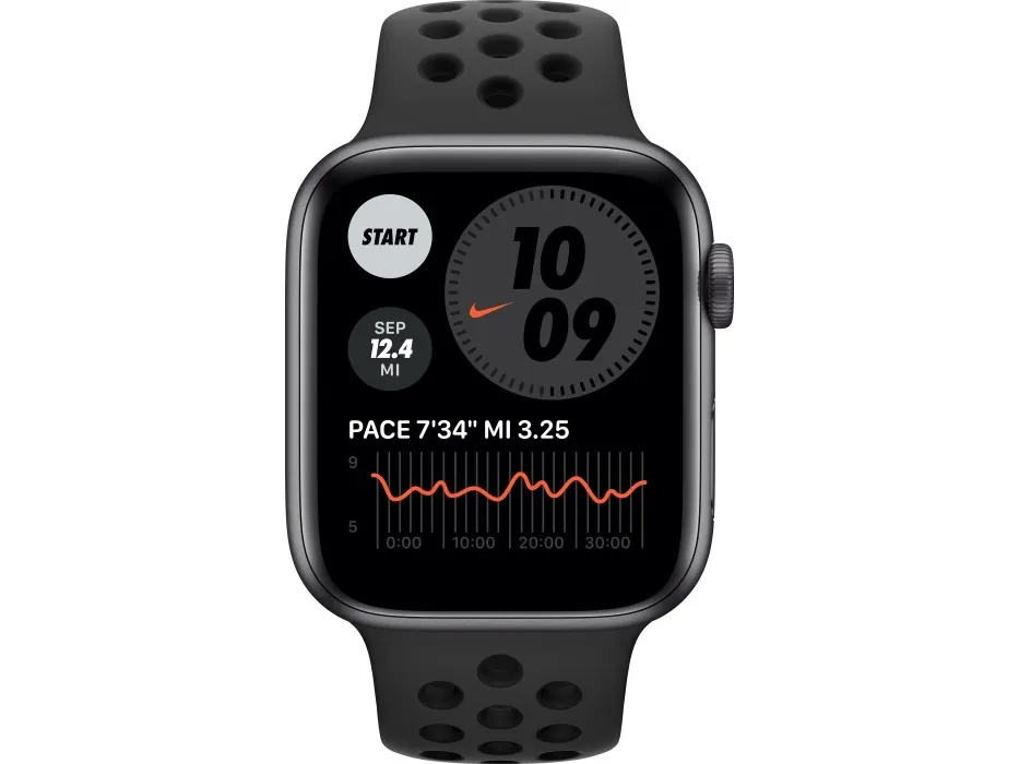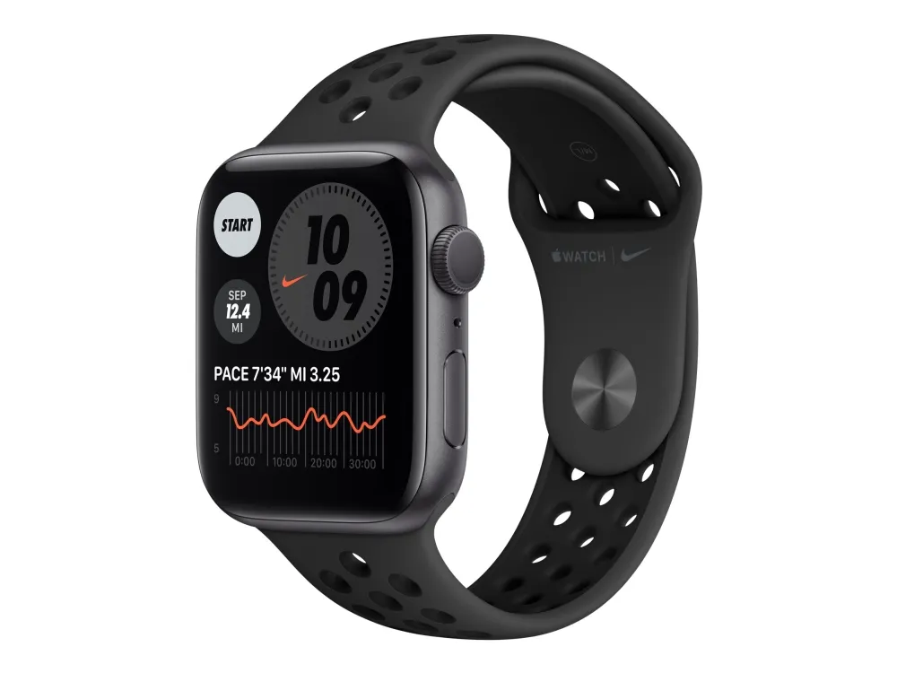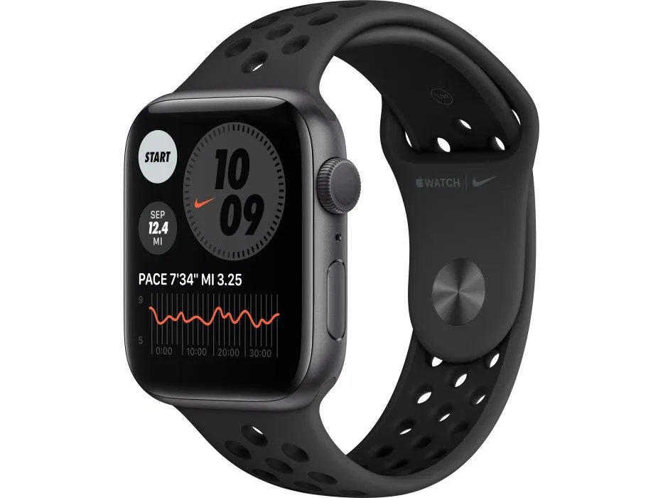 Apple Watch Nike Series 6 (GPS) - 44 mm - space gray aluminum - smartklokke med Nike-sportsmerke - fluorelastomer - antrasitt/svart - båndbredde: S/M/L - 32 GB - Wi-Fi, Bluetooth - 36.5 g