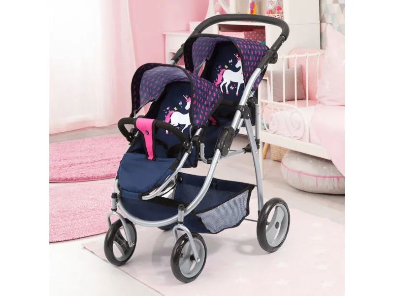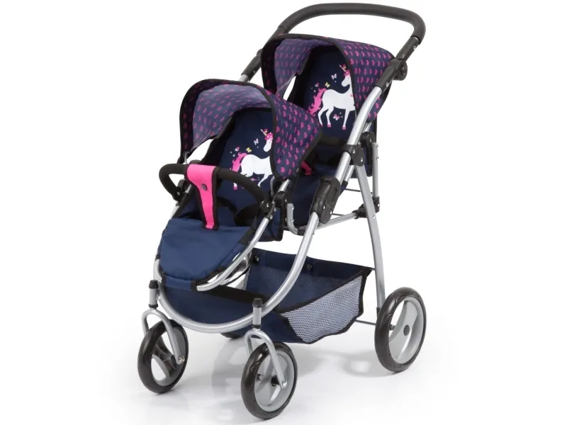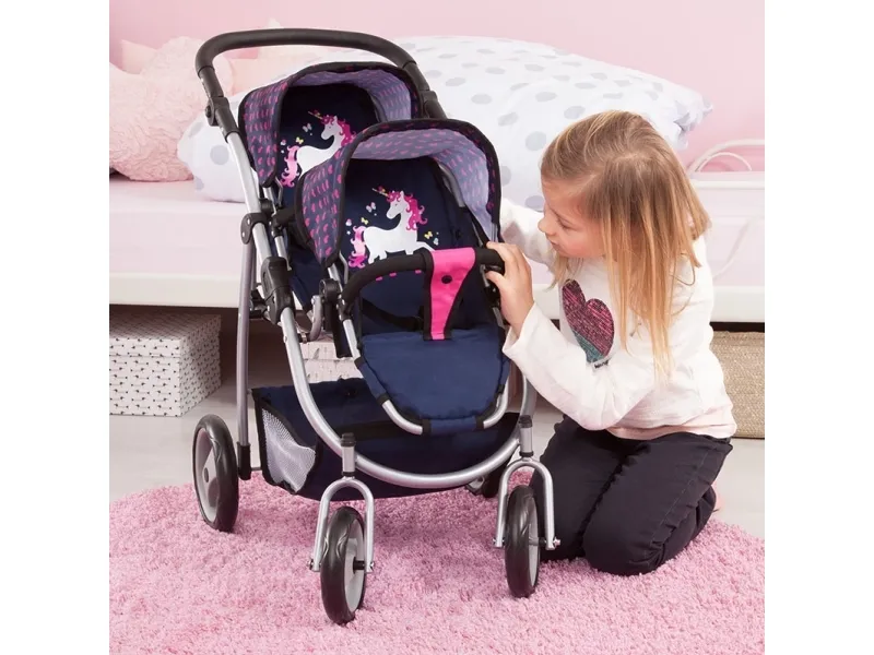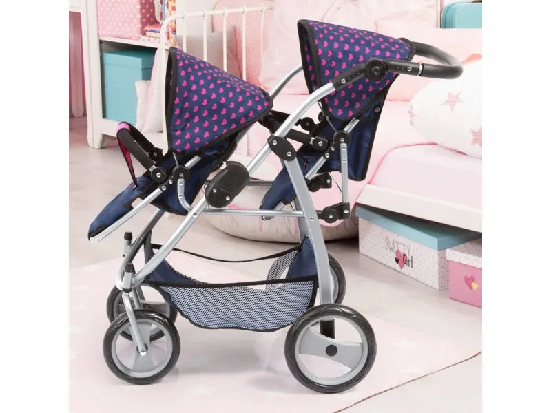 Moderne Dukke tvillingeklapvogn til dukker op til 46 cm. Denne tvillingetandem har et fleksibelt solskærm og er højdejusterbar. Desuden kan den foldes sammen for at spare plads, når du er på farten. Indkøbskurven er praktisk til alt, hvad du har brug for til en dejlig dagstur. Dukkevognen kan foldes sammen til transport eller opbevaring Håndtagshøjde: 42-81 cm Størrelse: 63 x 46 x 81 cm Alder: Fra 3 år Bayer Design er producent af dukker, dukkevogne og dukketilbehør som har bragt glæde og underholdning til generationer af børn med deres produkter af høj kvalitet. Deres dybe passion for det, de gør, kommer til udtryk i deres engagement i fremragende håndværk og upåklagelig kvalitet. Bayer Designs hovedkontor ligger i hjertet af Tyskland, hvor vi kan se tilbage på en lang tradition for dukkefremstilling. Hver eneste af deres dukker, barnevogne og dukketilbehør er fremstillet med største omhu og sans for detaljer, så de lever op til de høje kvalitetsstandarder, som kunderne forventer af os. Bayer har altid børnenes fantasi og glæde i tankerne. Bayer's mission er ikke bare at fremstille legetøj, men at skabe glæde, kreativitet og uforglemmelige barndomsminder. Hvis du er på udkig efter autentisk, holdbart og sikkert dukkelegetøj, er Bayer Design det oplagte valg.