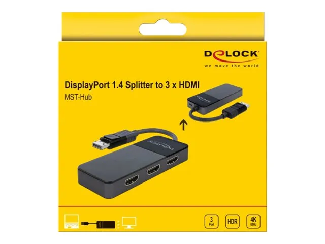 Delock DisplayPort 1.4 Splitter 1 x DisplayPort to 3 x HDMI MST - video/lyd-splitter - 3 porter