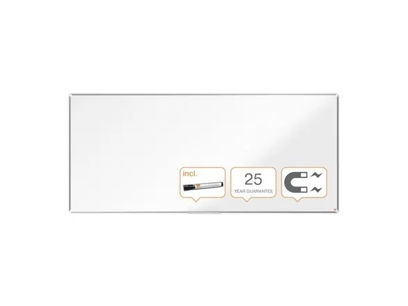 Enamel magnetic whiteboard with a modern stylish aluminum trim. Fixed by a through corner wall mounting and includes a large whiteboard pen tray for the convenient storage of whiteboard markers and erasers. The enamel magnetic whiteboard surface offers a superior level of erasability and durability for frequent use. Size: 270x120cm.