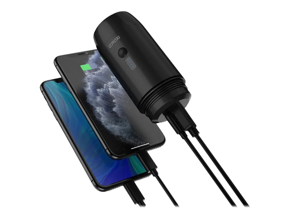 LED-effektmåler, overbelastningsvern, LED-lommelykt, indikatorknapp for effektnivå, kortslutningsvern, overutløsningsvern, overspenningsvern