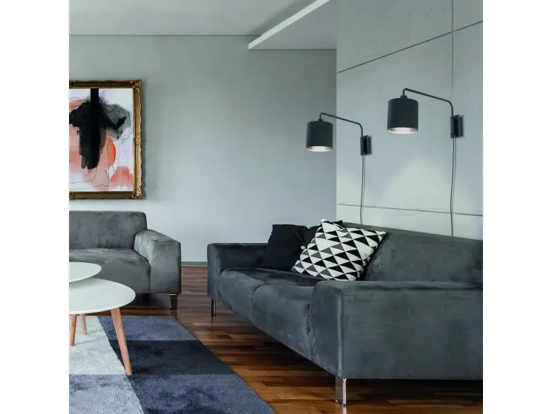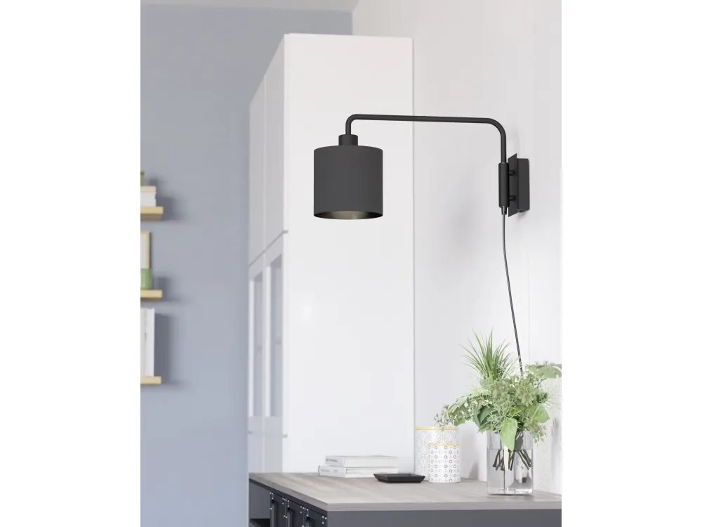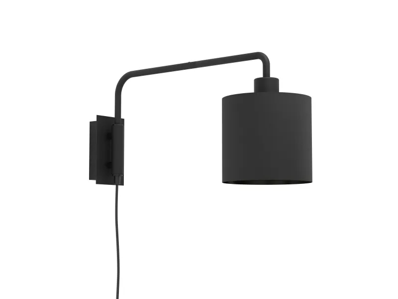 Væglampen STAITI 1 er lavet af sort metal med en tekstilskærm i samme sorte farve. Takket være den justerbare arm kan lampen placeres efter dine behov. Den kan også nemt tændes og slukkes via en kontakt på kablet. Væglampen i et monokromt design passer stilfuldt ind i moderne og minimalistiske indretninger og følger den populære trend med store og iøjnefaldende spots på en smagfuld måde. Lyskilden er ikke inkluderet. Lampen er egnet til enhver lyskilde med E27-fatning. EGLO STAITI væglampe i sort stål med sort tekstilskærm. Med gennemgangsafbryder. H: 24 cm, L: 16 cm, D: 50 cm. E27, maks. 40W. Leveres ekskl. Lyskilde.