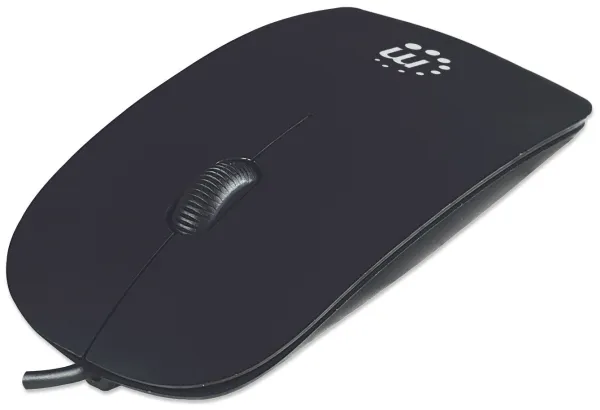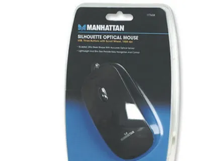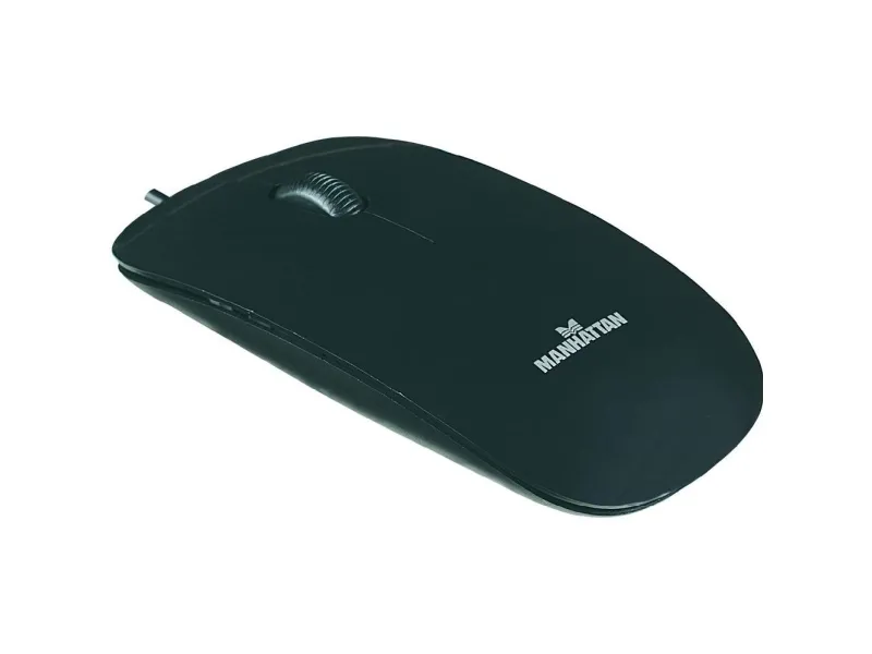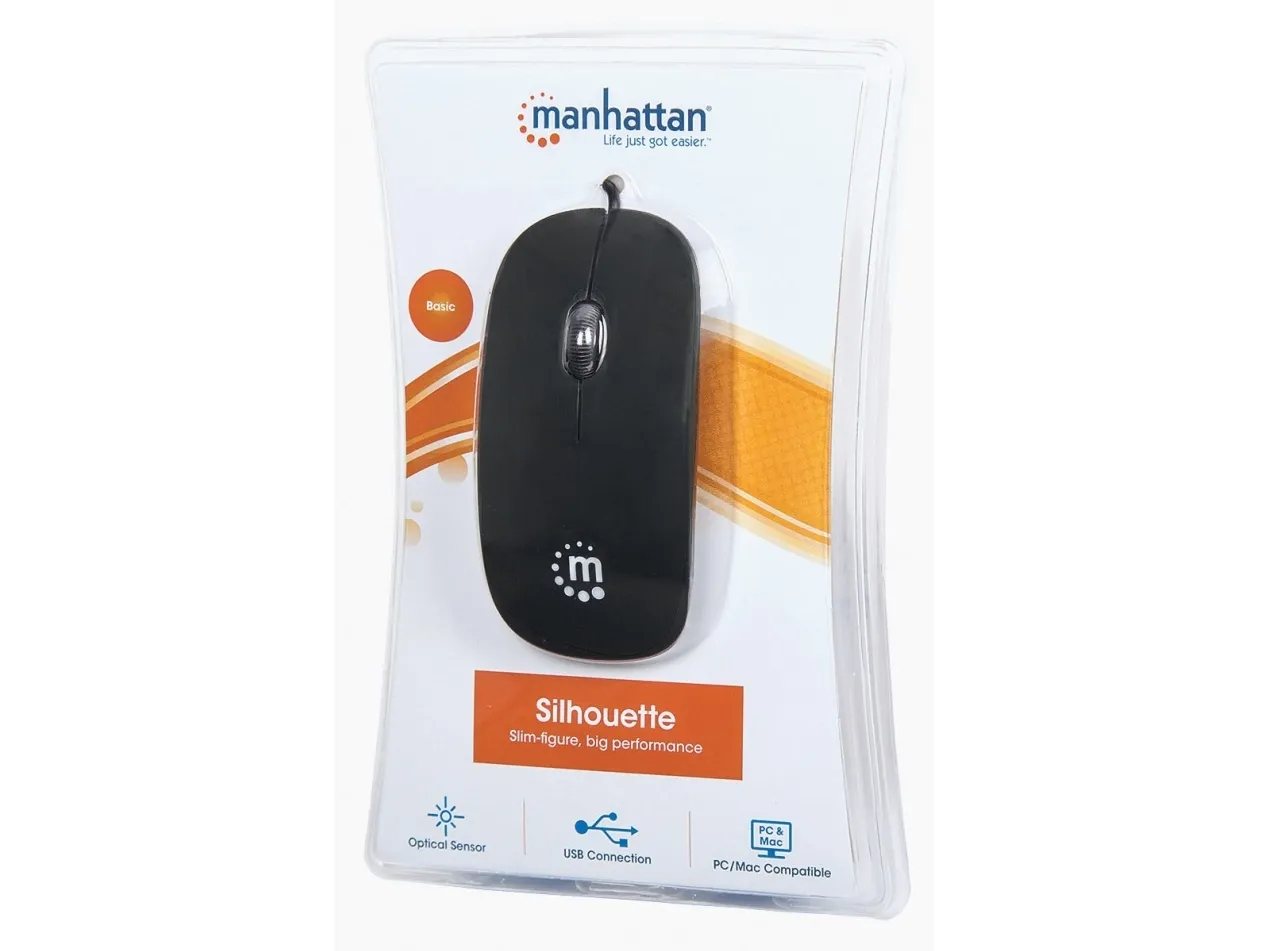 Form and function in a single modern design._x000D_ Give personal computing a contemporary makeover with the Manhattan Silhouette Optical Mouse. Its sensitive and responsive 1000dpi optical sensor and modern shape help improve computing experiences without overpriced, over-improvements._x000D_ _x000D_ The ambidextrous shape and familiar three-button configuration with scroll wheel provide direct, confident access to essential commands without useless technical gimmicks or needlessly reinventing the mouse and retraining the user. A lightweight, slim body and gently sculpted profile eliminate heavy, bulky batteries for maximum control with minimal wrist movement and effort. Its glossy, almost seamless surface gives the top shell an integrated, all-in-one appearance that provides an attractive and uncluttered style to workspaces._x000D_ _x000D_ Plug-and-play installation and compatibility with Windows XP/Vista/7/8.1/10 and Mac offer quick and easy operation. With no mechanical or rolling parts to wear or fail, the Manhattan Silhouette Optical Mouse requires little care to maintain its good looks and reliable performance.