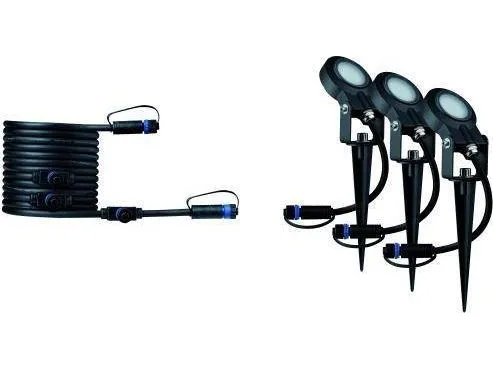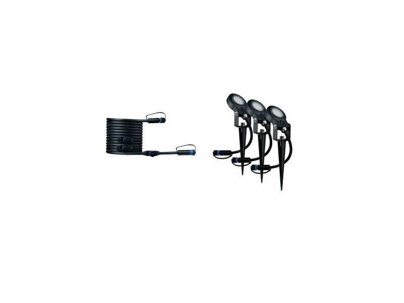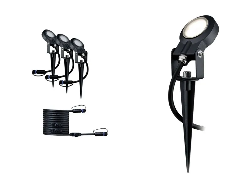 The Plug & Shine Sting extension set enables up to three additional luminaires to be connected to the existing 24V light installation. The spikes are ideal for illuminating plants or other objects, they can be directed individually and are absolutely weather-resistant. The system can be expanded with additional Plug&Shine components, if required.