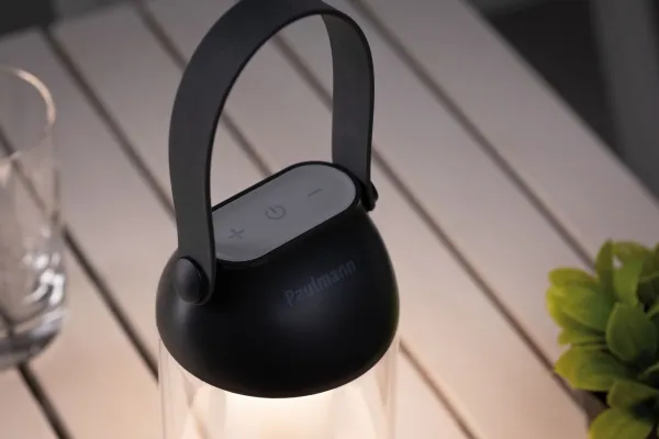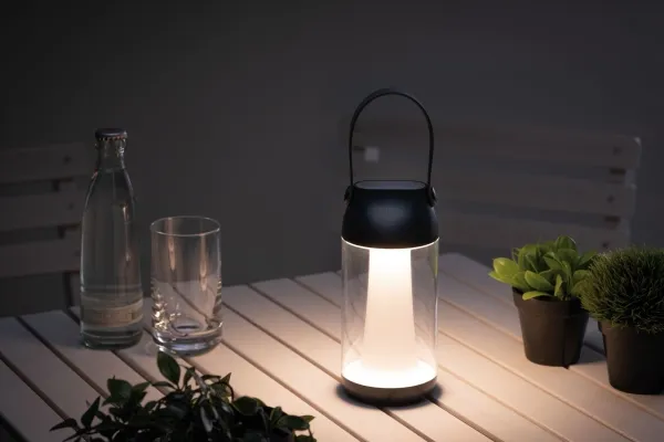 The practical outdoor table luminaire Cupulino can be dimmed in four stages. It is charged via USB cable and provides 8 hours of lighting at the lowest level, and 4 hours at the highest level.