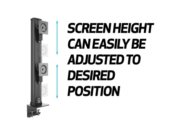 M VESA Deskmount HD Dual Vertical Widescreen 32" - 50" works with almost all LCD screens on the market supporting VESA standards of 75/100mm holding screens weight up to 24 kg each, height of pillar is 800 mm allowing two screens.