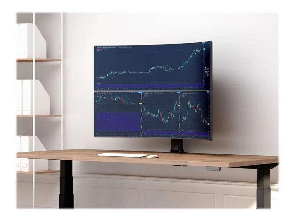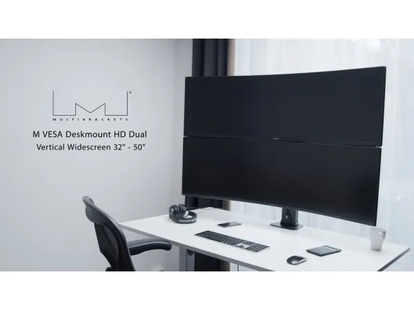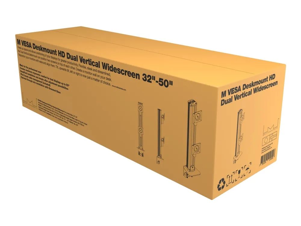 M VESA Deskmount HD Dual Vertical Widescreen 32" - 50" frees up space and allows positioning of your display for greater productivity. Flexible, sleek and streamlined, the Dual Vertical version you can position two screens on top of each other. Create a monitor wall on your desk.