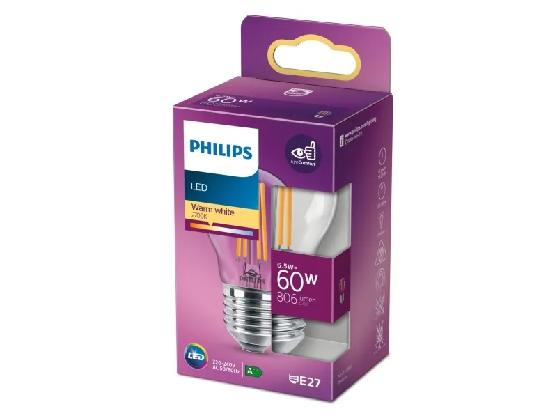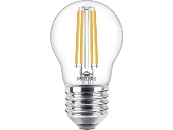 Philips - LED-filamentlyspære - form: P45 - klar finish - E27 - 6.5 W (ekvivalent 60 W) - klasse E - varmt hvitt lys - 2700 K