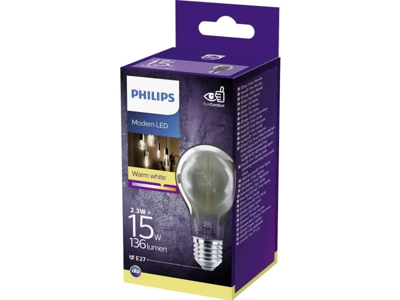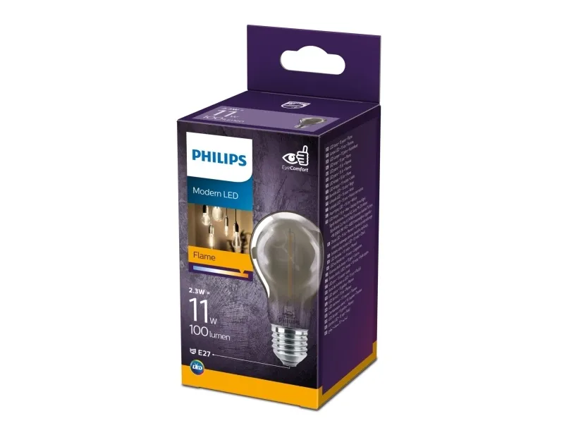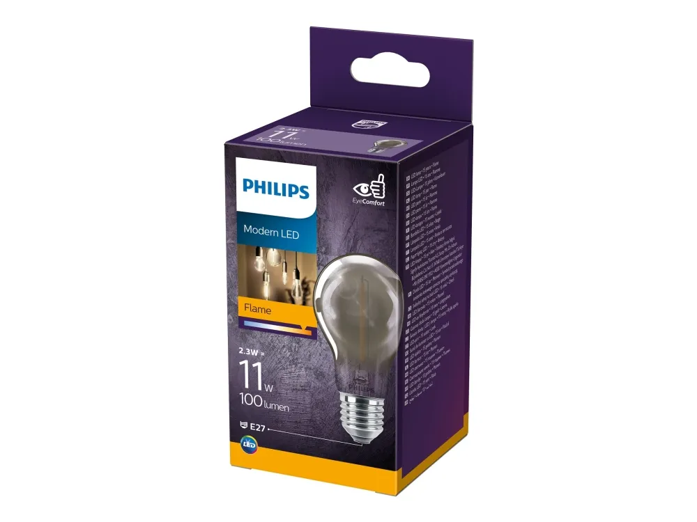 Philips - LED-filamentlyspære - form: A60 - E27 - 2.3 W - flammelys - 1800 K - røkfarget