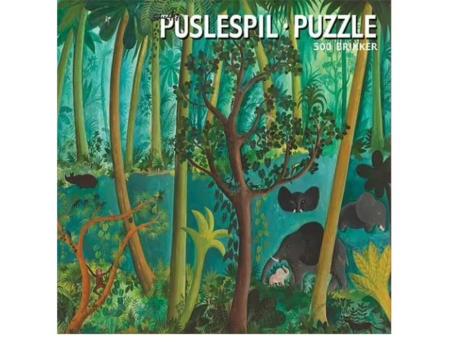 Det er en fornøjelse at give sig i kast med Hans Scherfigs urskovsbillede, som myldrer af liv. Der gemmer sig faktisk mere end 35 dyr i billedet og når alle brikker er samlet, har man haft ikke bare næsehorn og elefanter, men også krokodiller, firben, egern, gibbonaber, halvaber, slanger, guldsmede og en masse forskellige fugle i hånden. Æsken indeholder stort print af motiv 48x48cm.