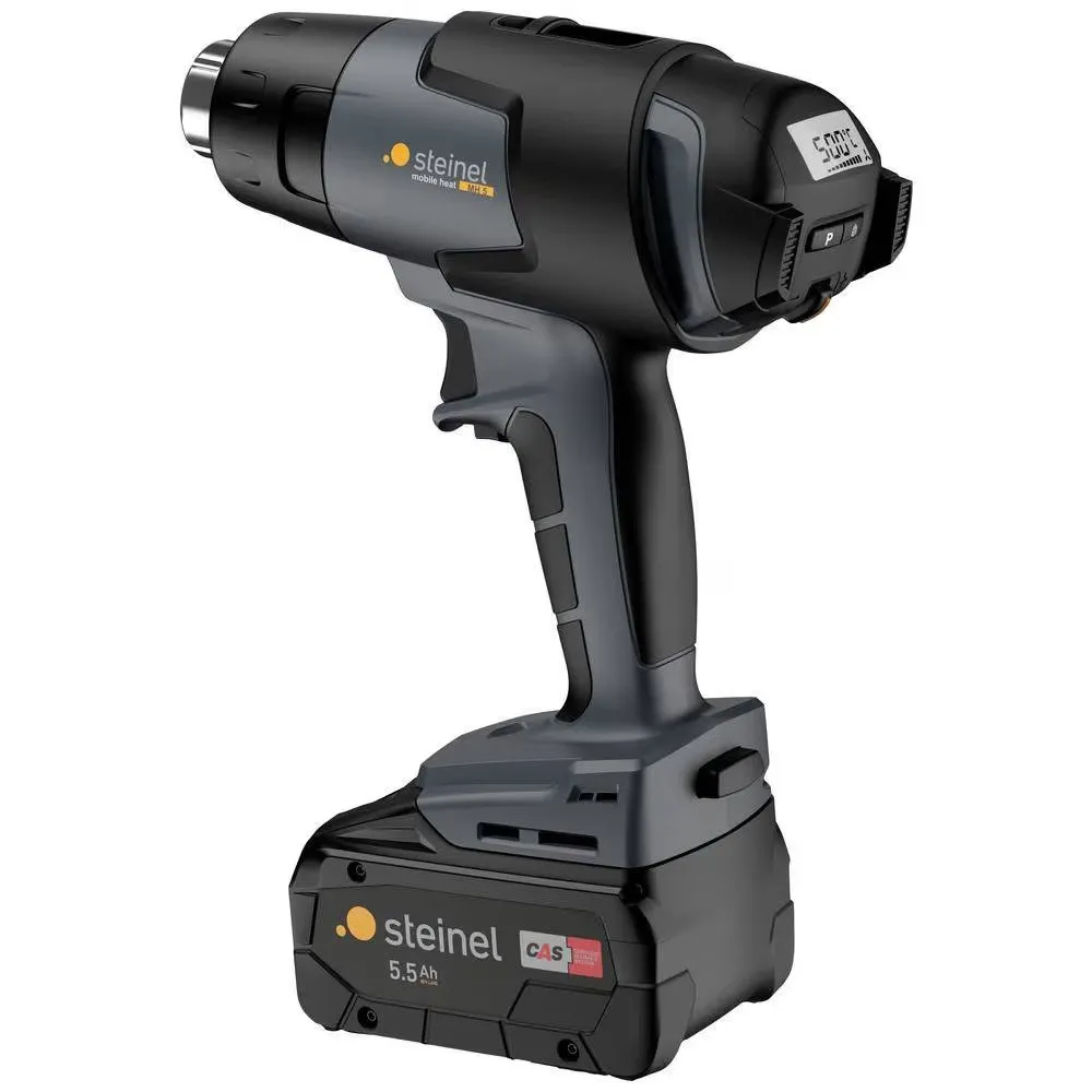 STEINEL MH5. Product type: Hot air gun, Handle shape: Pistol handle, Display type: LCD. Maximum airflow: 300 l/min, Working temperature (max): 500 °C, Working temperature (min): 50 °C. Power source: Battery, Battery technology: Lithium-Ion (Li-Ion), Battery capacity: 5.5 Ah. Width: 72 mm, Depth: 225 mm, Height: 204 mm