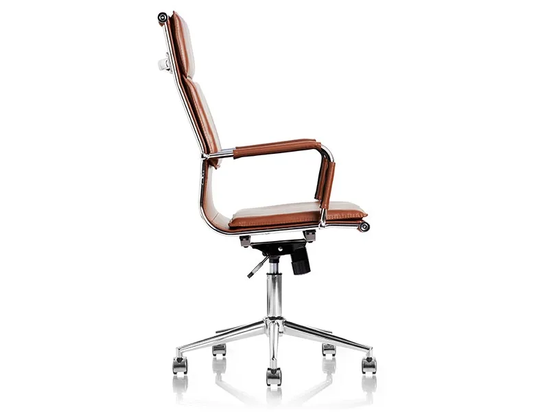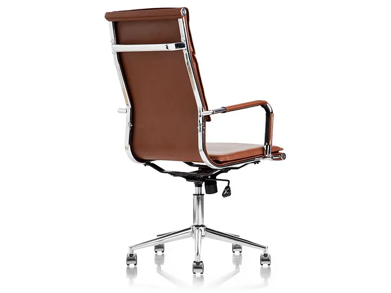 CHARLEY er en rigtig lækker konferencestol! Med komfortabelt polstret sæde og ryg i brun skindimitation, todelt rygpude for et flot udseende og med de nødvendige muligheder for indstilling af siddehøjde og vippefunktion.