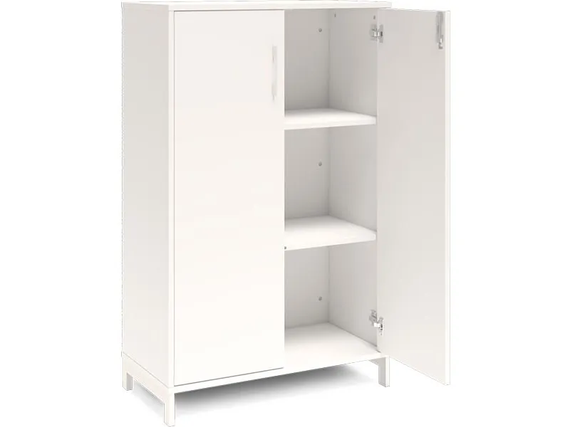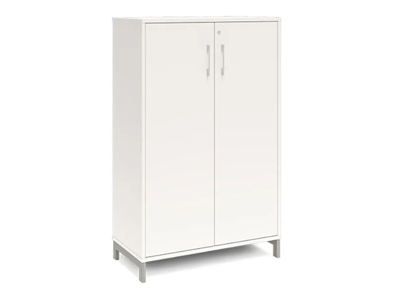 3A4 kontorskab i kontormøbelserien DNA, med 3A4 dør, udvendig bredde x dybde x højde, 800 x 400 x 1275 mm, inkl. understel. Dette kontorskab leveres med hvidt laminat kabinet i kombination med hvide laminat døre og på et flot hvidt understel, miljørigtig pulverlakeret.